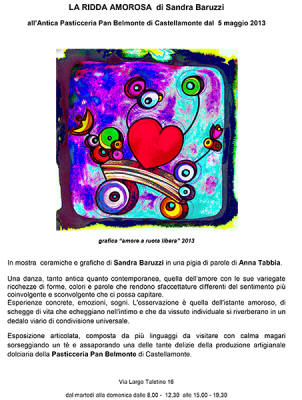 ![]() LA RIDDA AMOROSA di Sandra Baruzzi all'Antica Pasticceria Pan Belmonte di Castellamonte Via Largo Talentino,16 5 maggio - 5 giugno 2013 |